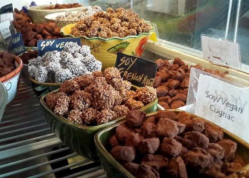 Drop by and savor one or more of our 26 artisanal flavors, including liqueured, non-liqueured, and vegan chocolates.